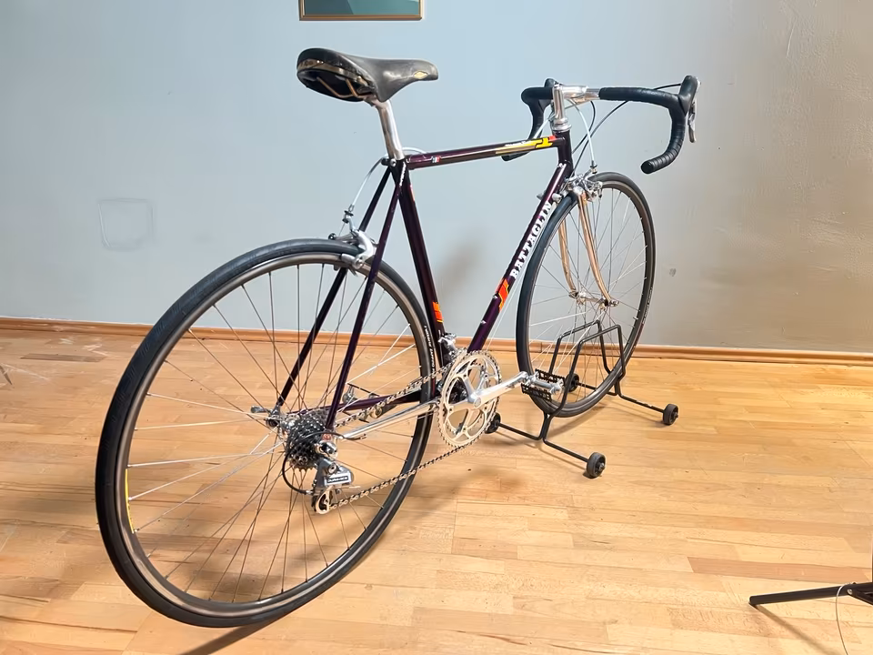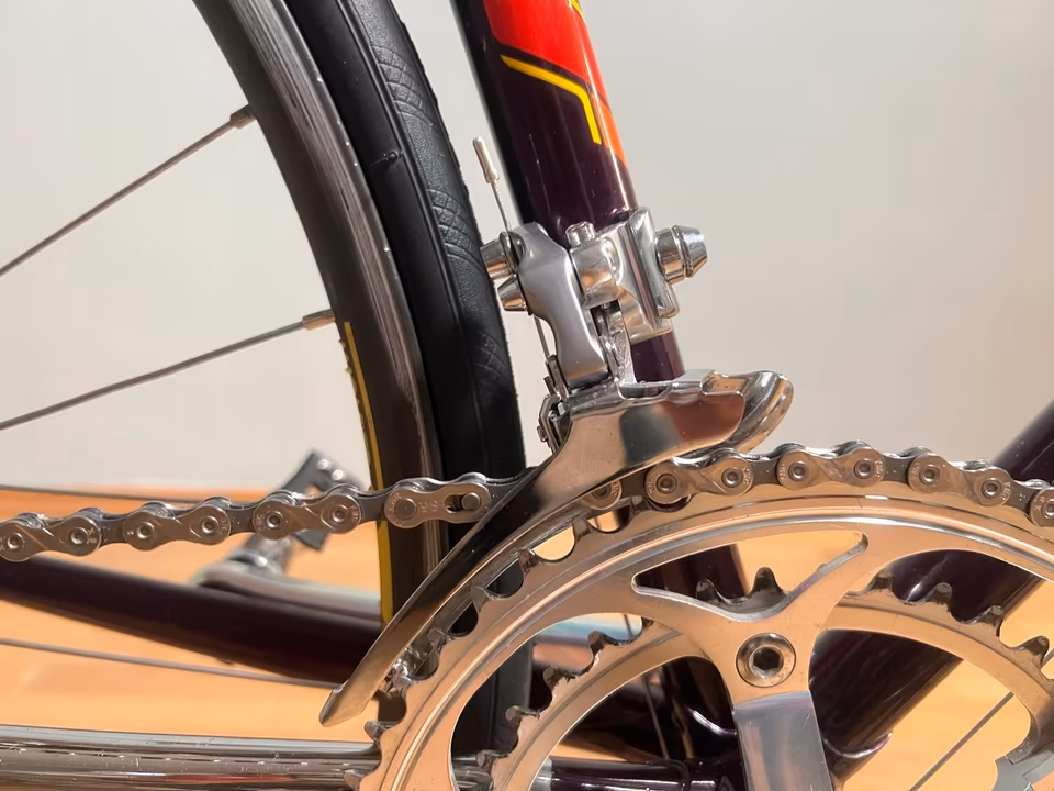 Battaglin aus Columbus SLX Rohrset. Lila Originallackierung mit vielen Details. Komplette Shimano Dura Ace 2x8 Gruppe mit STI. Komplett überholt mit vielen Neuteilen.