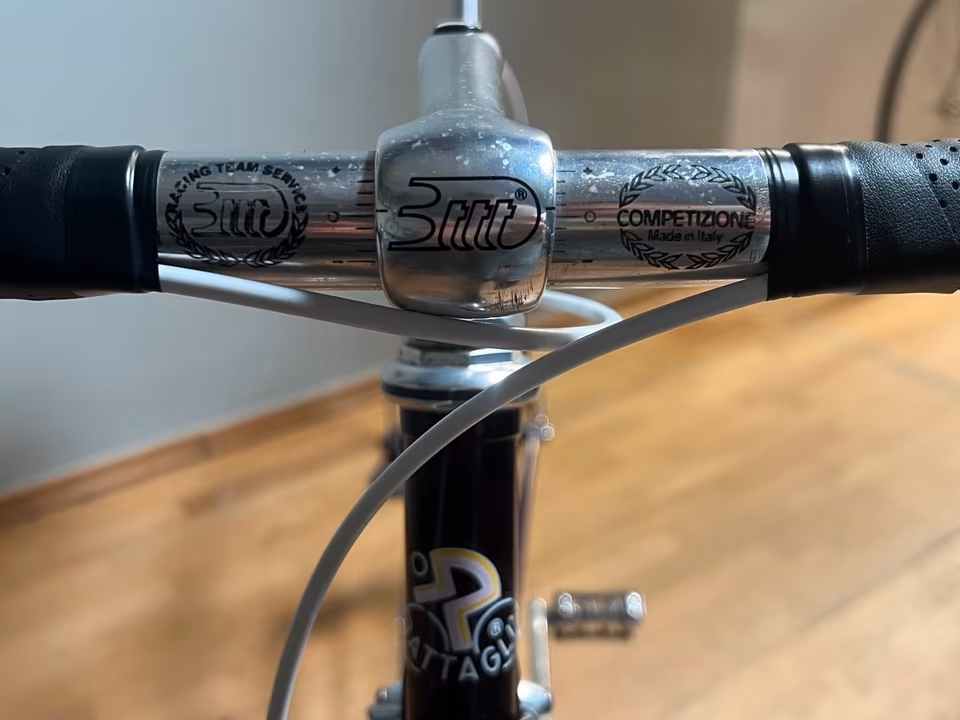Schaltgruppe: Shimano Dura Ace (komplett, 2x8) Bremsen: Shimano Dura Ace Lenker: 3TTT Italia Vorbau: 3TTT Italia Sattel: Selle San Marco Rolls