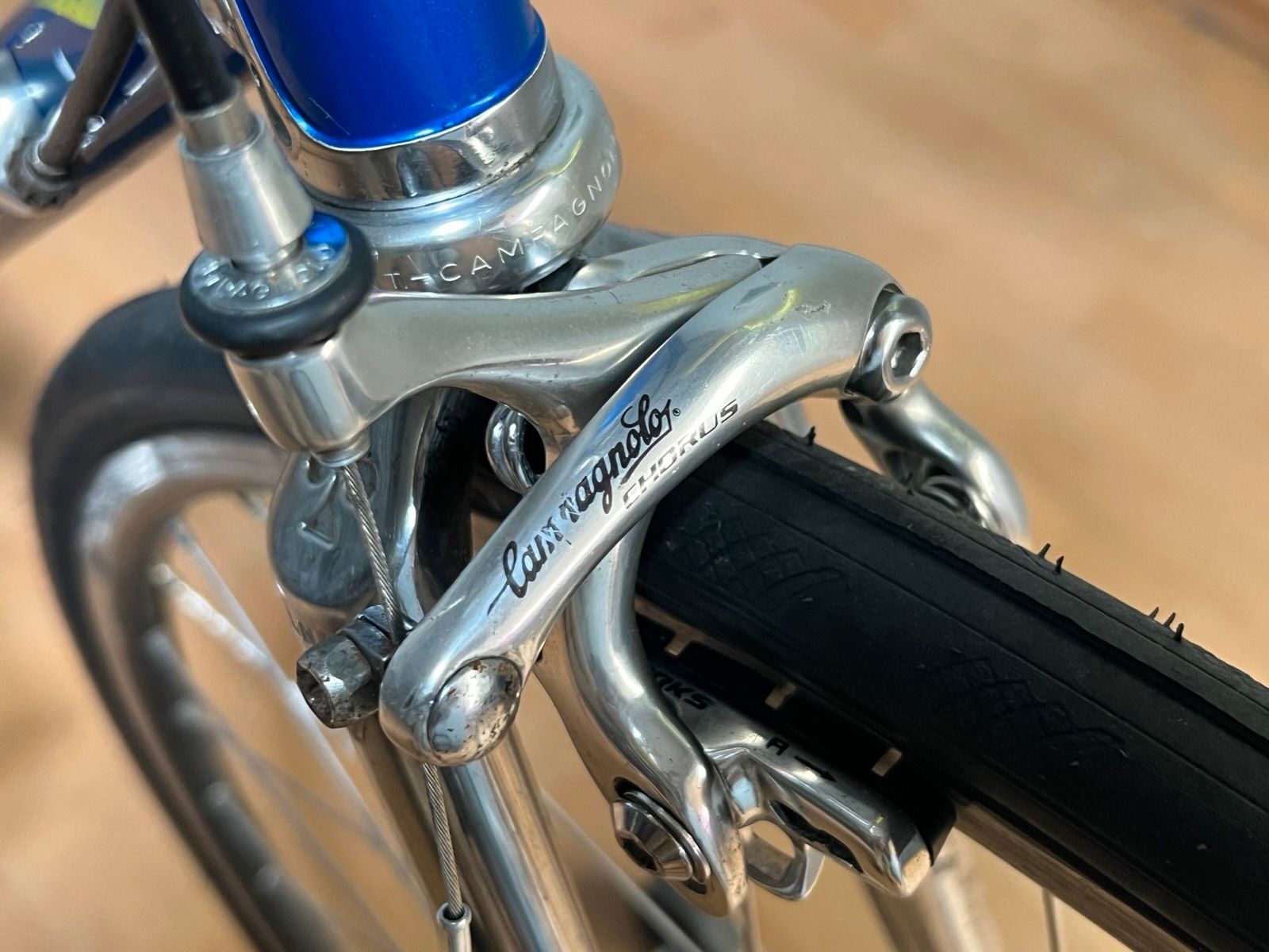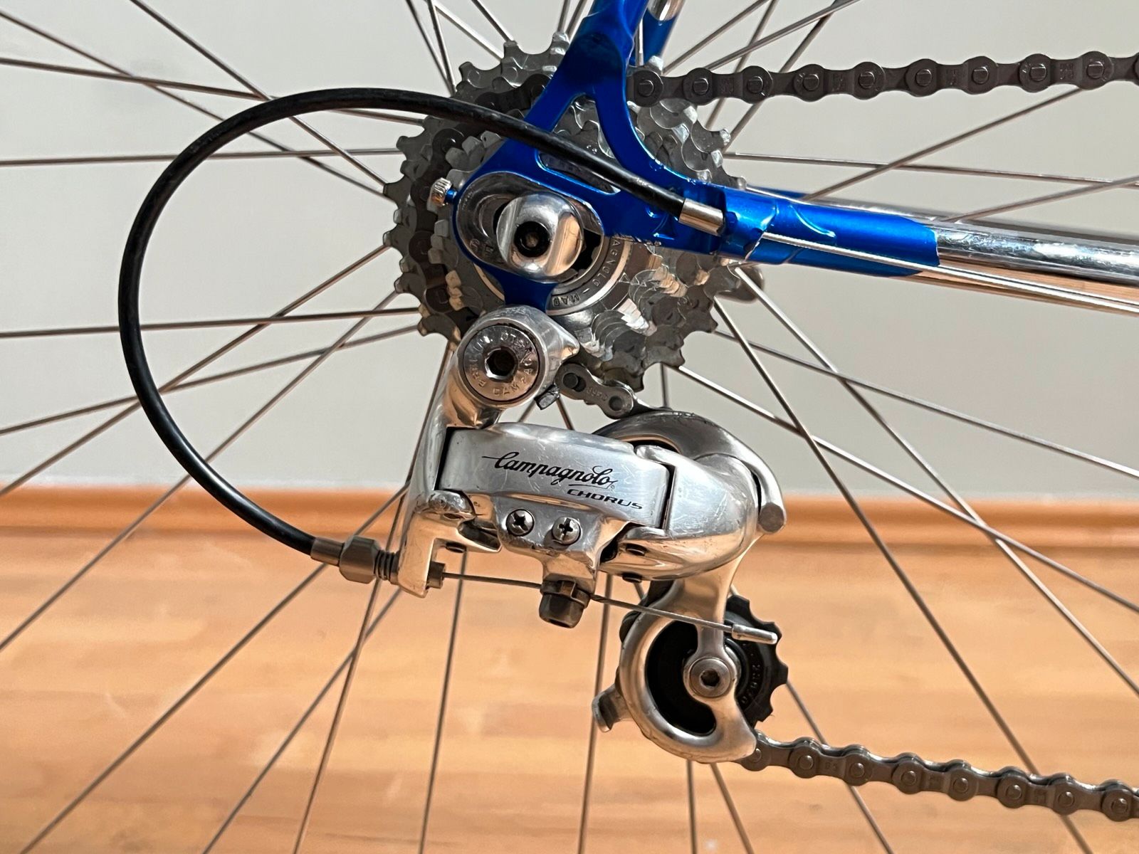 Colnago Master X Light – handgefertigt Anfang der 90er in Cambiago. Stahlrahmen in sehr gutem Originalzustand, blau mit neongelber Beschriftung und Chromdetails. Kein Rost, keine Dellen, keine strukturellen Schäden. Komplett überholt.