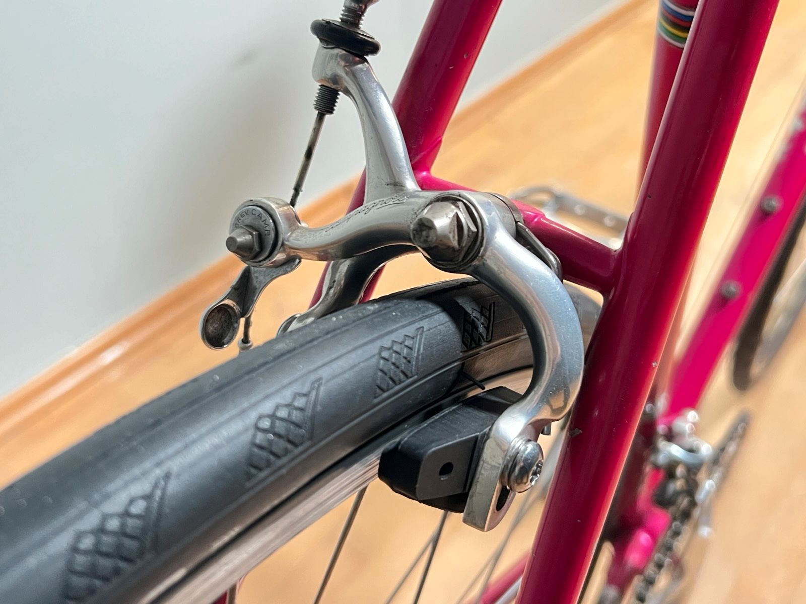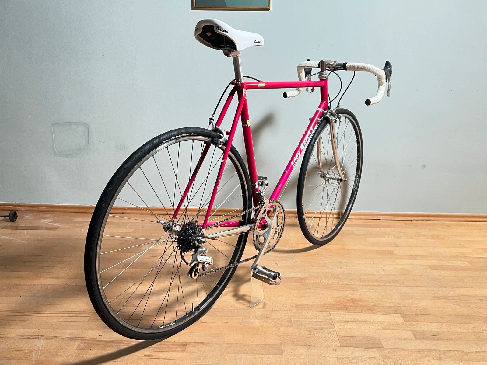 Schaltgruppe: Campagnolo Athena (komplett), 2x8 Schalthebel: Brems-Schalthebel am Lenker Lenker: 3TTT Italia Vorbau: 3TTT Italia Sattel: Turbo