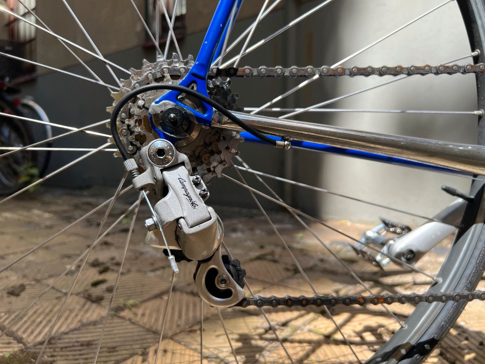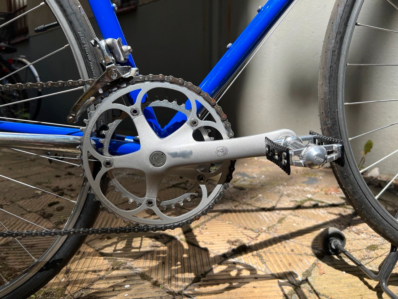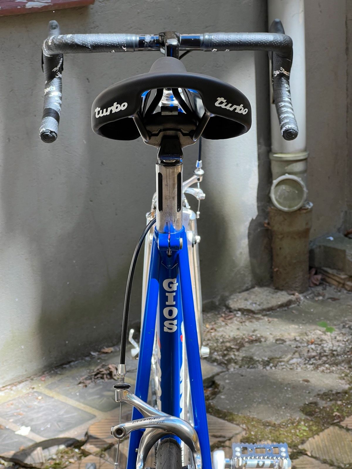 Schaltgruppe: Campagnolo (komplett) Bremsen: Campagnolo Record Lenker: ITM Italia Vorbau: Pantographiert (Gios) Sattel: Turbo